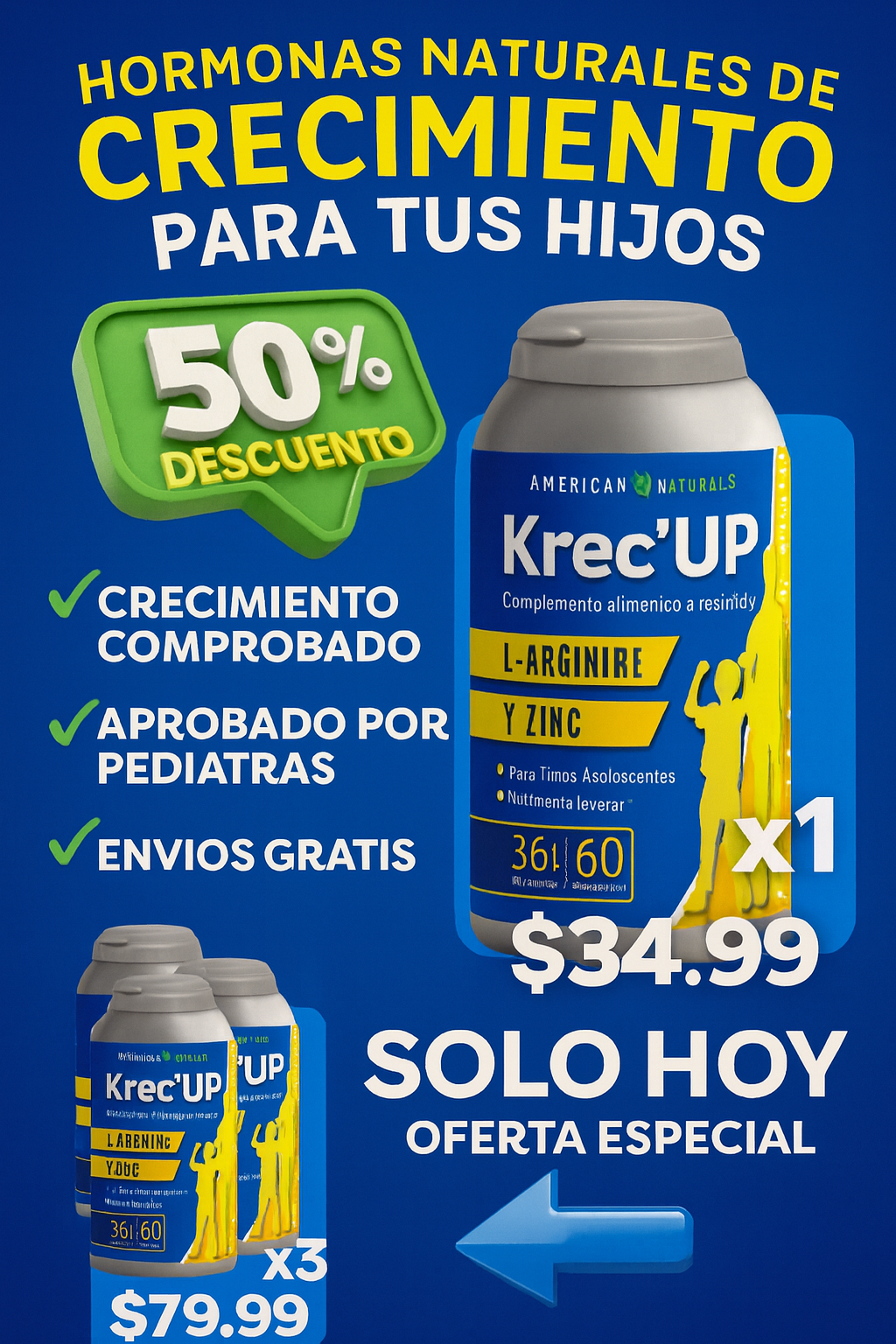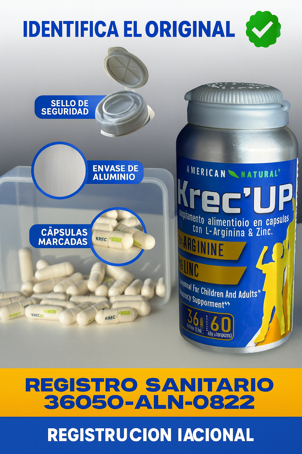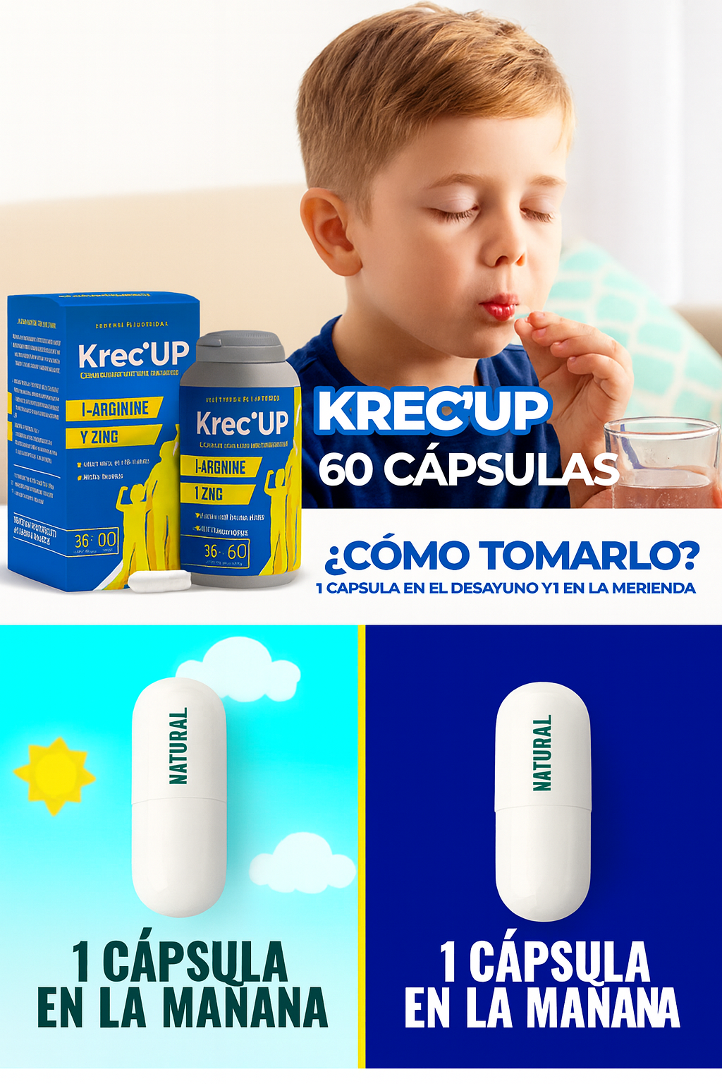 ✅ Sí. Krec’UP está elaborado con ingredientes naturales, sin hormonas artificiales ni químicos dañinos. Puede ser consumido por niños (bajo supervisión), jóvenes y adultos siguiendo la dosis indicada.